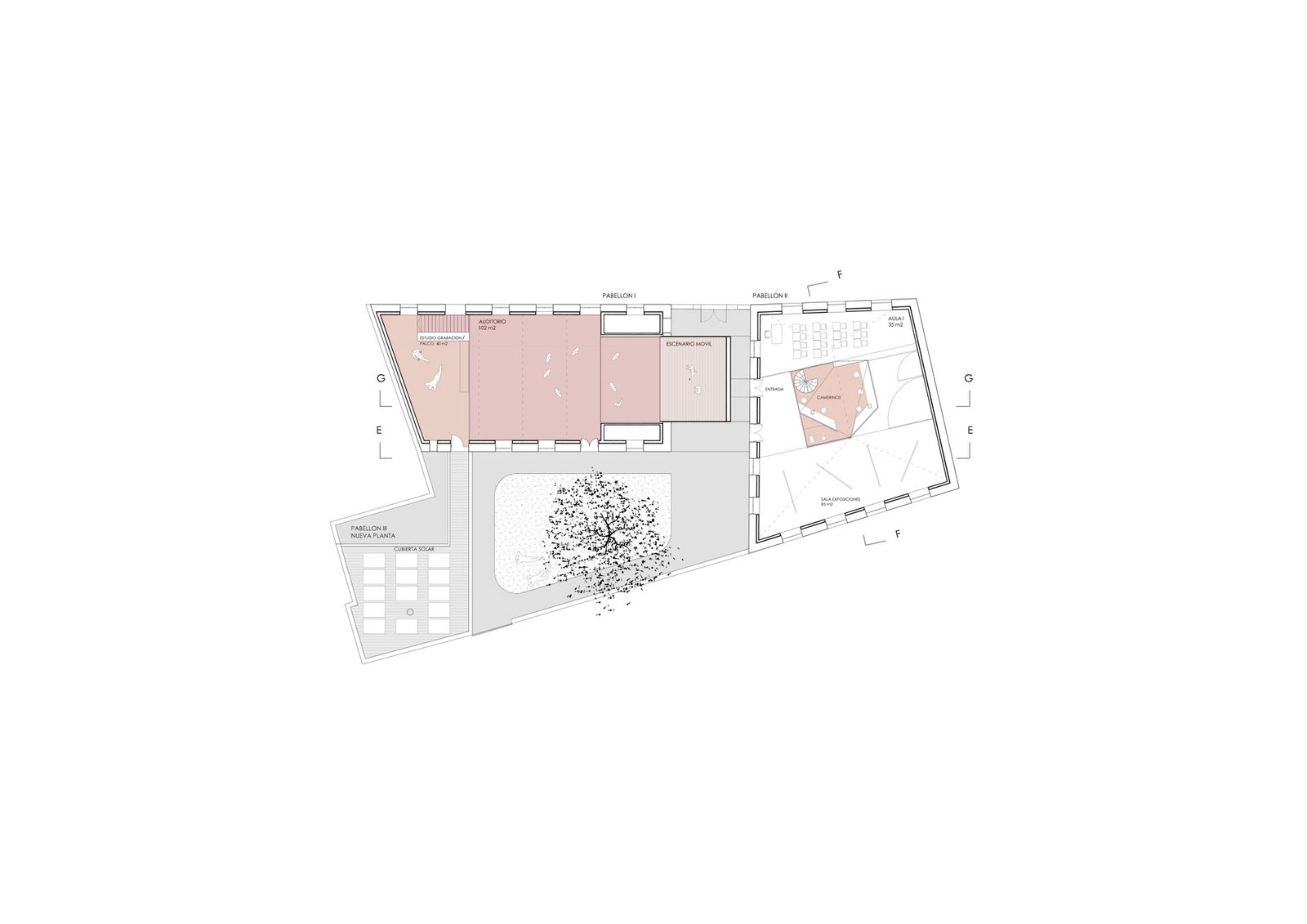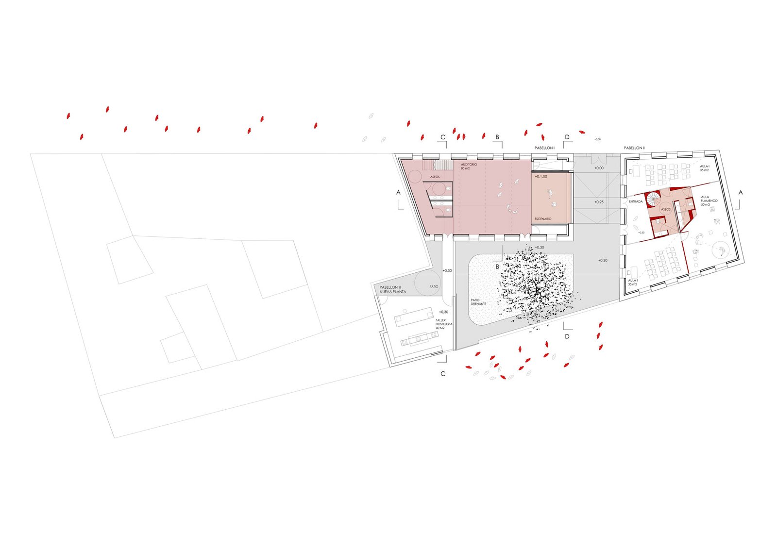 The old building has been used as a school since its construction in 1903. Designed by the Murcian architect Pedro Cerdán, it will be renovated to adapt it to other uses. Due to the cultural tradition of the Town Hall of La Unión, where the internationally known Cante de las Minas is celebrated, it was decided to dedicate it to a multifunctional building around Flamenco singing and its parallel activities. The concept of UKRAINIAN DOLLS or MATRIOSKA is used to generate the proposal by emptying the old pavilions and creating a new energetic skin. The new parts are conceived within each other, developing the required functional programme.
