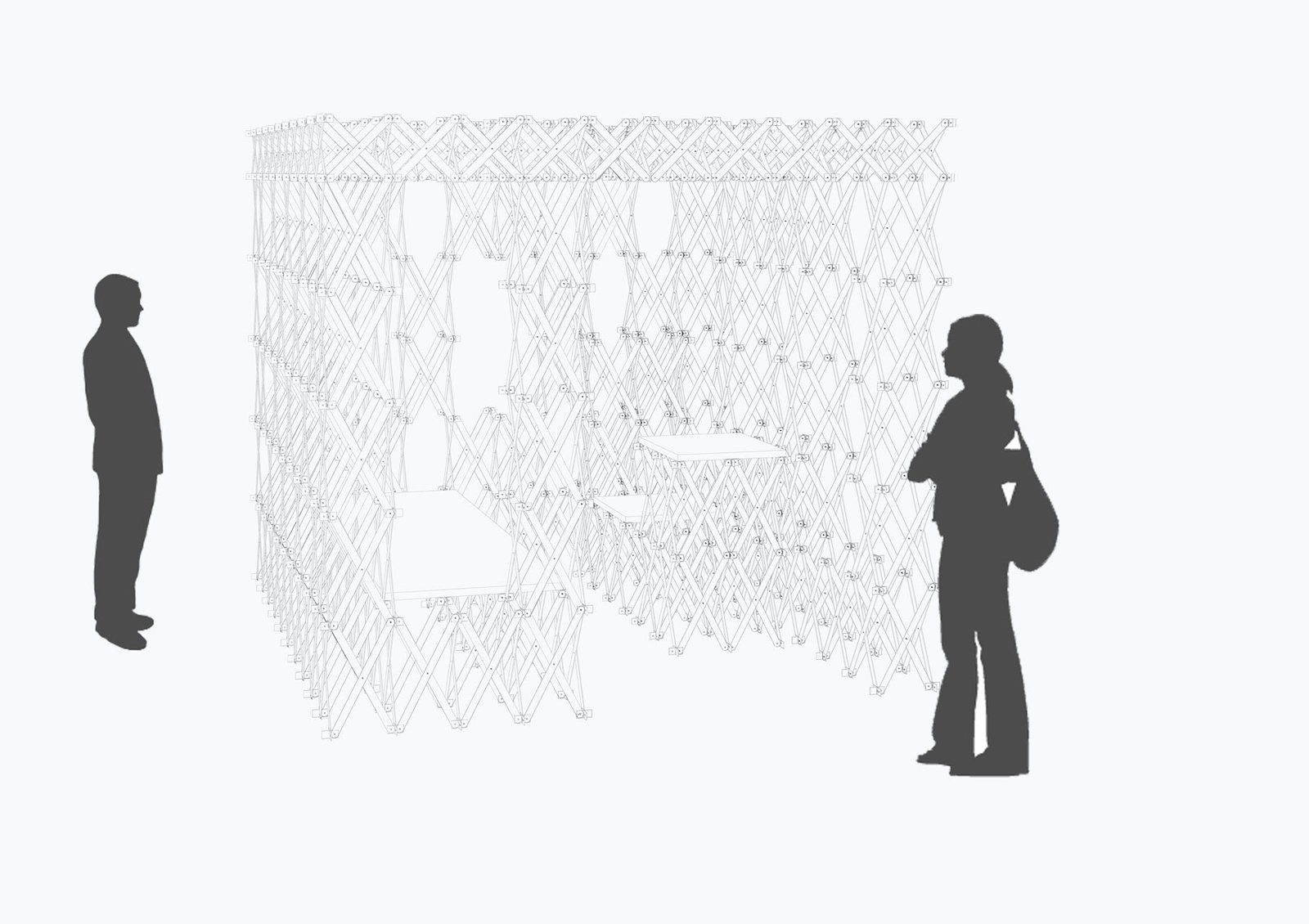 Barras", in which modular scissor systems are developed, as well as the patent of Chuck Hoberman,