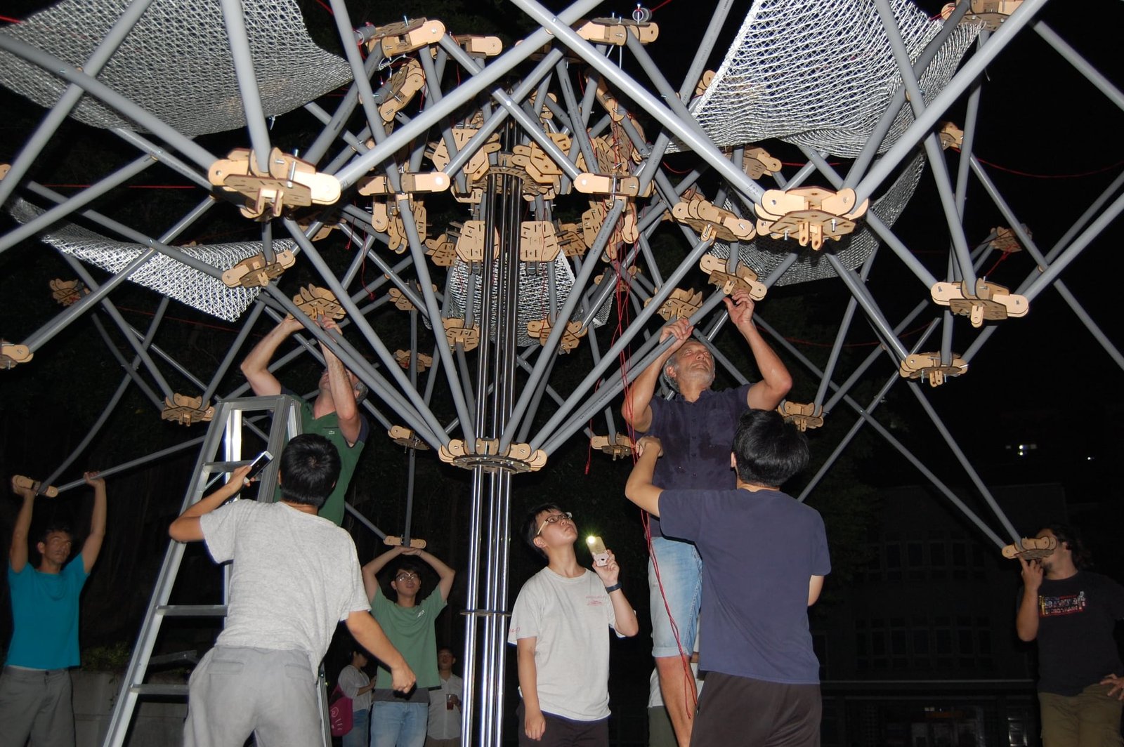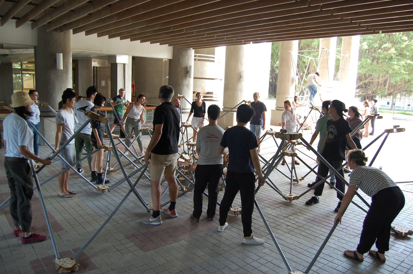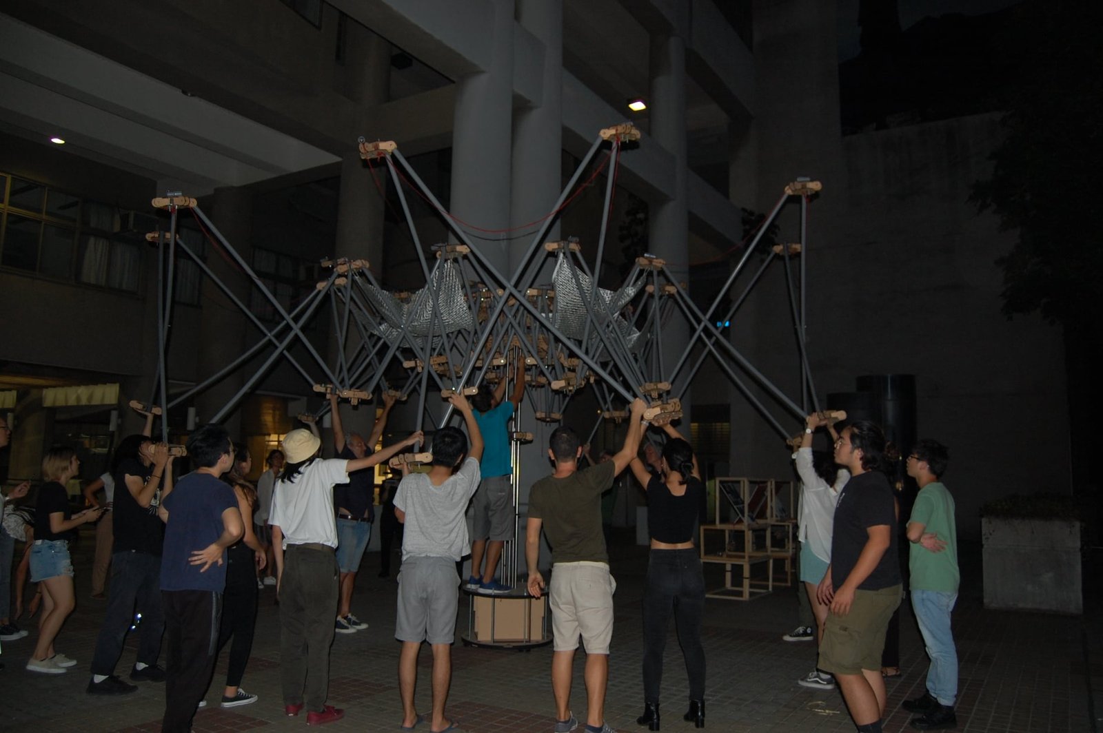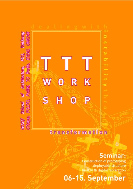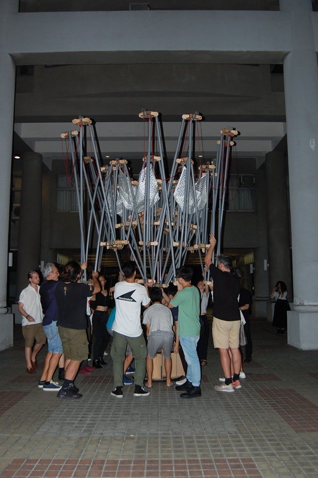 TTT WORKSHOP | CONSTRUCTIONS OF PROTOTYPING DEPLOYABLE STRUCTURE SITE SCHOOL OF ARCHITECTURE FCU TAICHUNG TAIWAN | 2019 | TEAM: FCU TAICHUNG, ETSAE (CARTAGENA), UTOKIO, POLITO, UNICAM | TYPOLOGY: UMBRELLA, PAVILLION/DIGITAL
